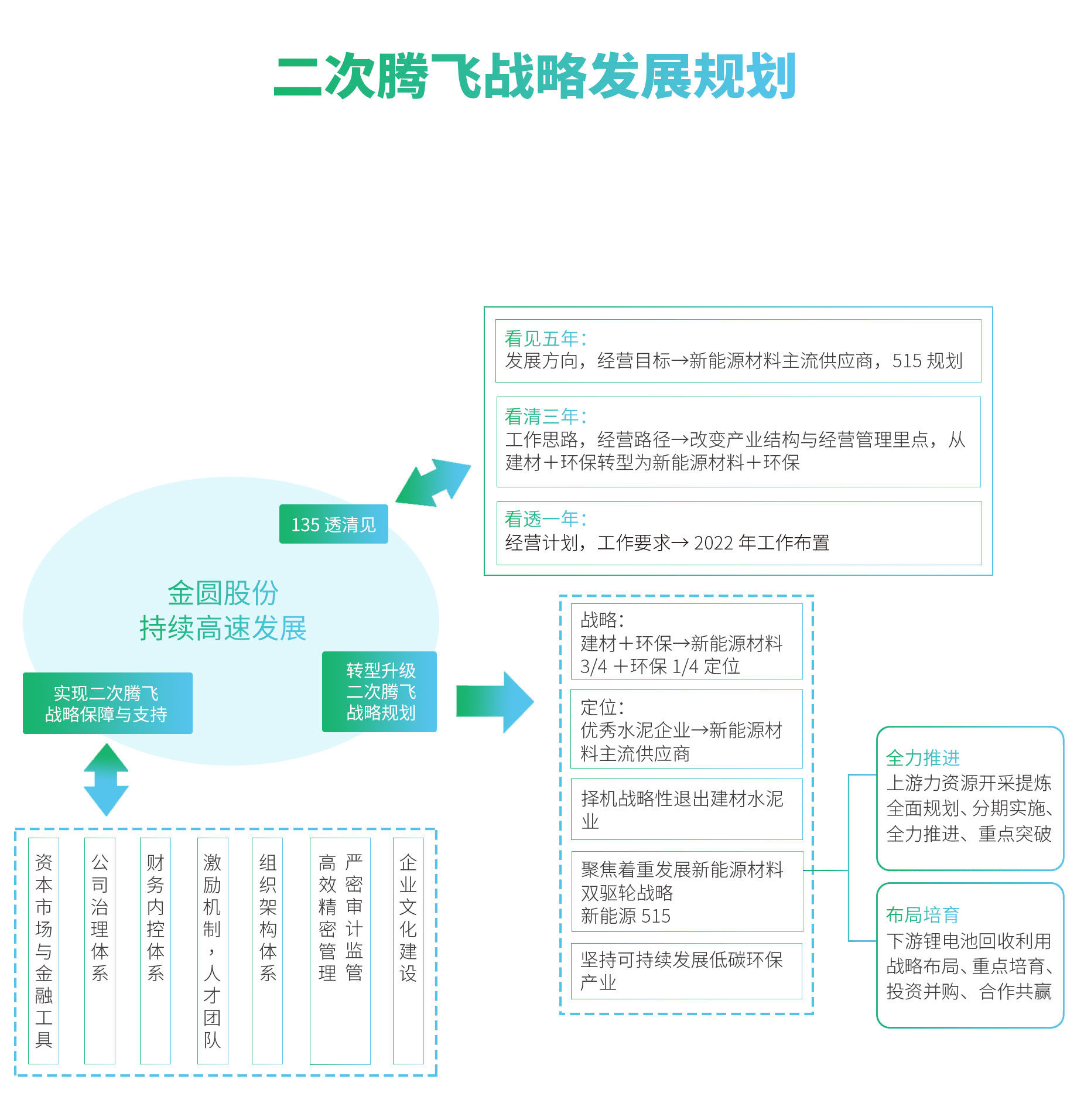 金圓將通過“二次騰飛”戰(zhàn)略實施,躋身成為中國乃至全球領先的集上游鋰資源開采提煉、下游廢舊鋰電池與固危廢資源化處置及稀貴金屬綜合回收利用為一體的新能源材料主流供應商。